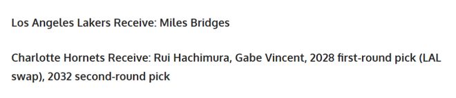 不过美媒也表示,现阶段与黄蜂队达成交易或许存在阻碍。此前在交易截止日前,湖人队曾撤回关于马克-威廉姆斯的交易,因此黄蜂队大概率不会愿意再与紫金军团进行交易合作。