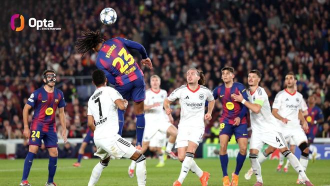 此役主场对阵法兰克福,孔德在比赛第50分钟和第53分钟先后接拉什福德、亚马尔传中头球破门,上演职业生涯首次梅开二度。